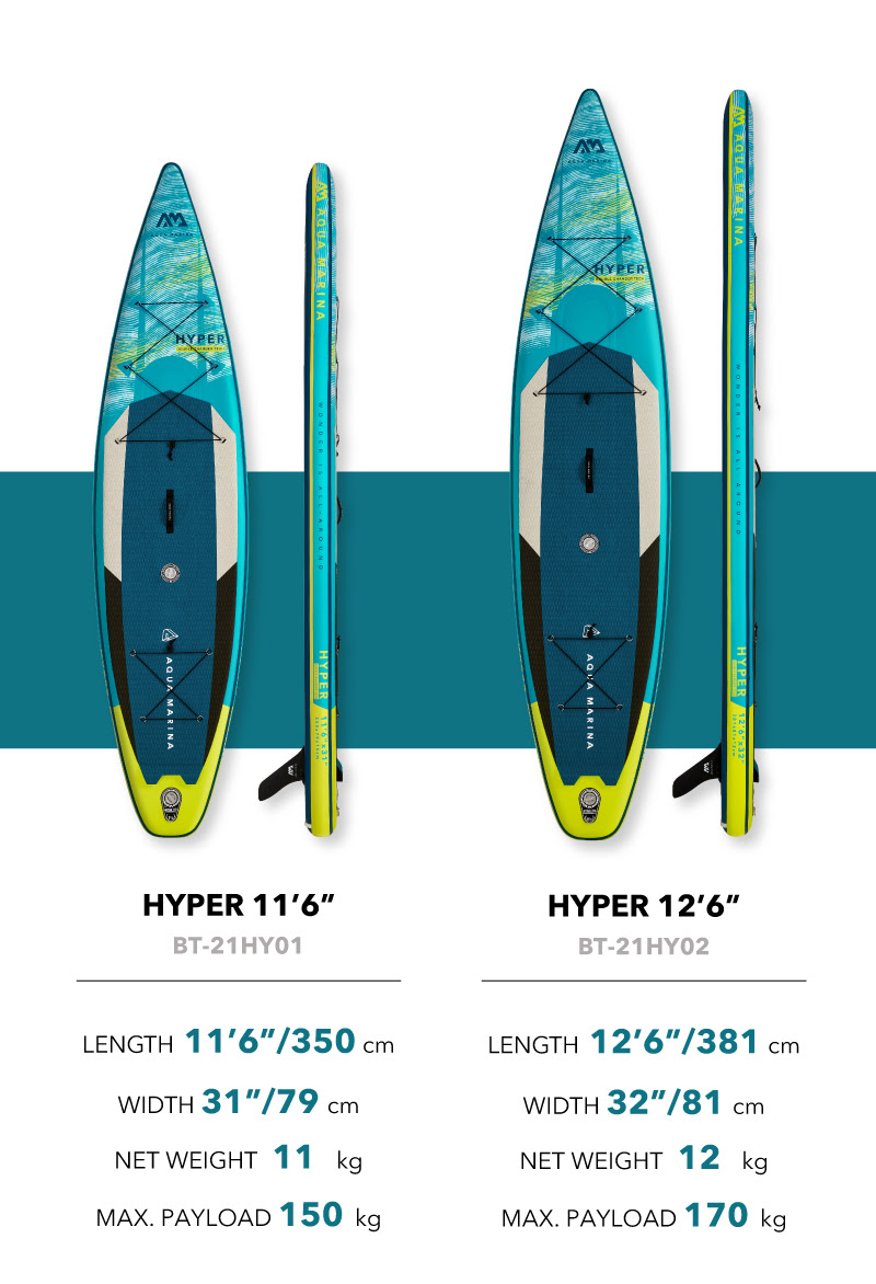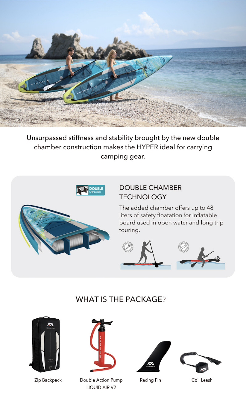 With Double Chamber Technology for extra stiffness and safety consideration, HYPER 11’6″ and HYPER 12’6″ are the perfect boards for a multi-day trip or a step up in performance.