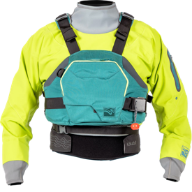 The 5 Decades Limited Edition Collection includes three pieces that feature special dew (teal) and mantis (yellow) colorways and a 5 decades wave graphic treatment, with each wave representing a decade. The collection includes a HustleR rescue vest, the new ŌM dry top, and a new paddling short that Kokatat developed in collaboration with Dewerstone. The Kokatat X Dewerstone Life Short and ŌM dry top are offered in men’s and women’s specific styles.