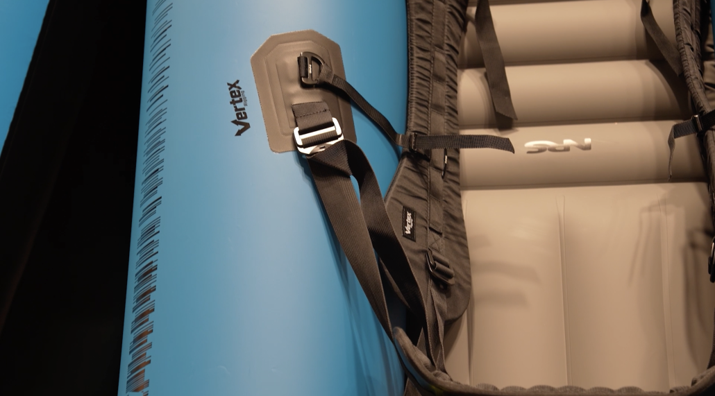 Vertex Outfitting is a brand-new setup from NRS for their Packraft line, to hold you stable in rough waters, Vertex Pro backband comes with the throwbag attached.