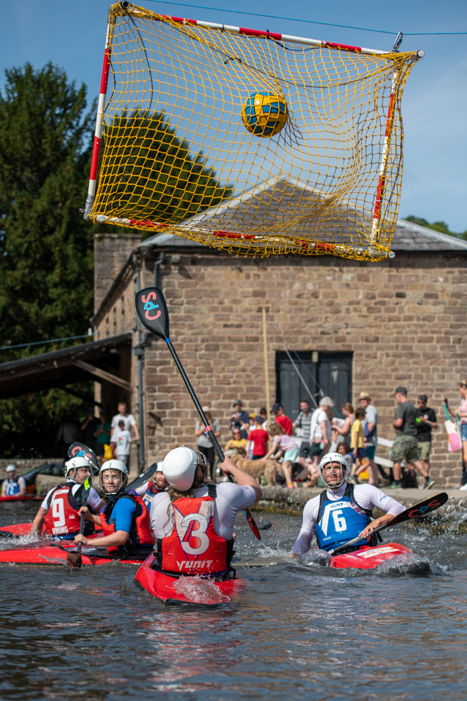 On Sunday, the British National Champions, Viking Canoe Polo from Belper amazed us with their kayak based team ball gain, very much like water polo. Again they shared their on the water ball skills experience with our group of local youngsters.