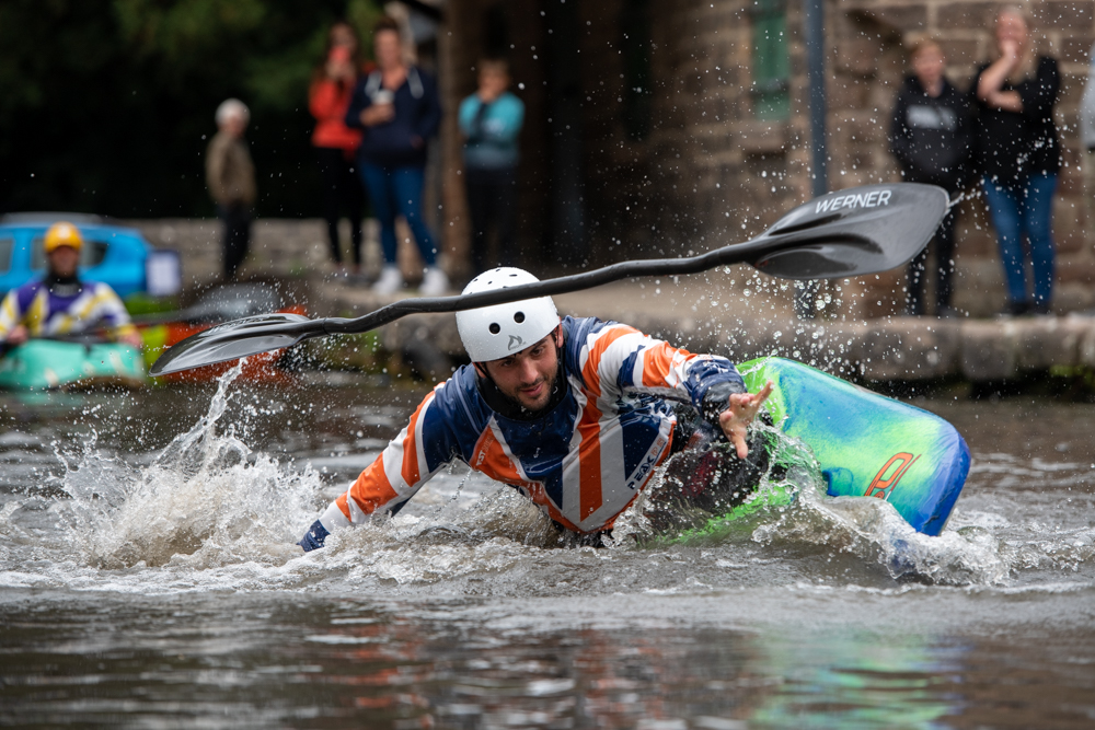 On Monday members of the Great British Freestyle Kayak Team including World Bronze medalist Harry Price joined in the fun down at Cromford Wharf. Demonstrating an array of impressive aerial and vertical creatively named moves including cartwheels, cleans, loops, godzillas, tricky woos and more…