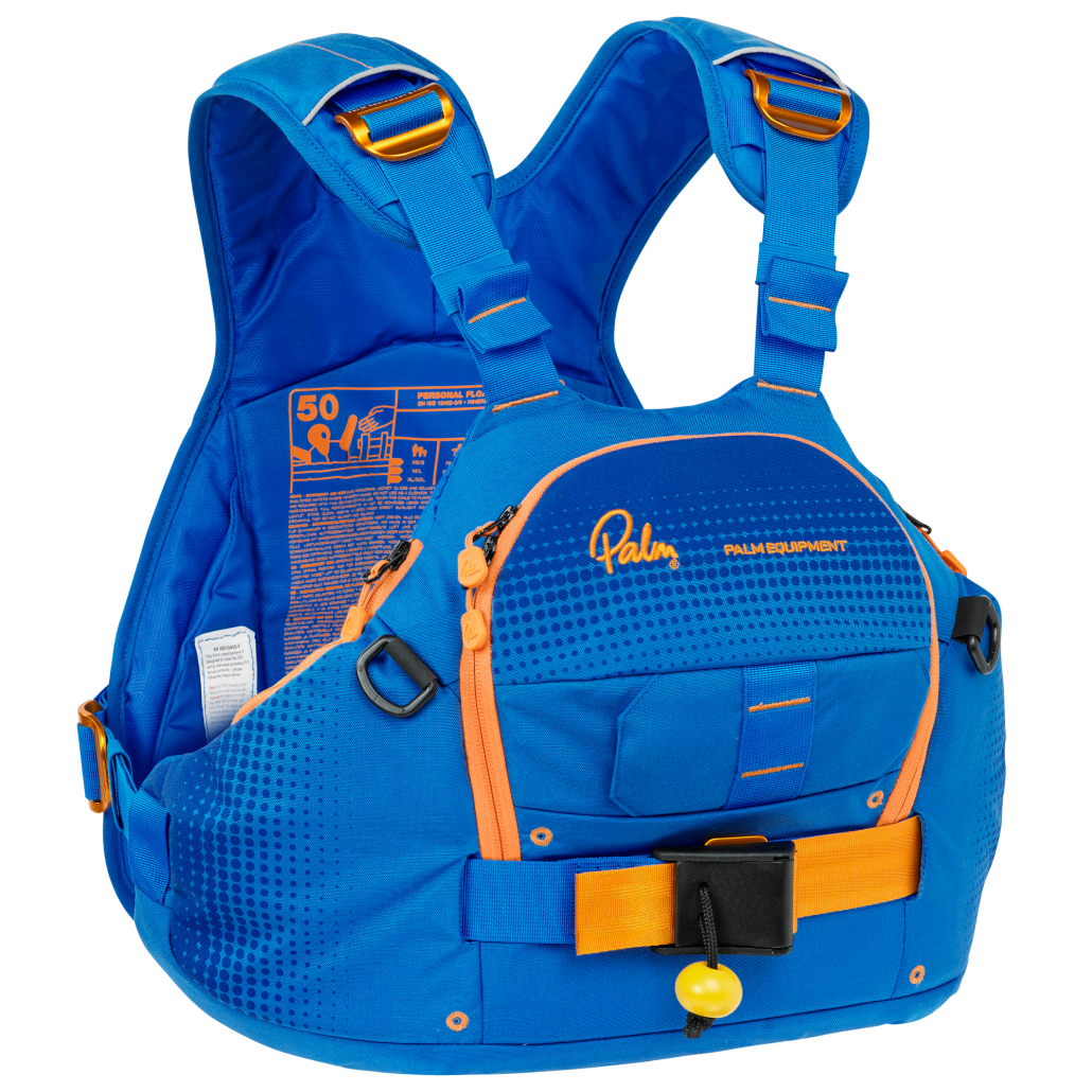 Concealed storage is abundant: a spacious utility-draw front pocket, side stash pockets, dedicated knife and whistle placement and ancillary stow space front inside the PFD too.