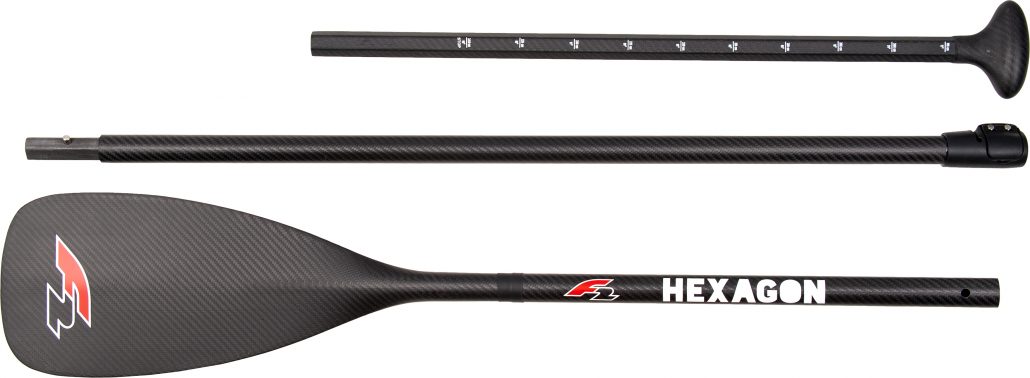 The F2 “Hexagon” paddle was developed together with the TU Chemnitz. It weighs only 800 grams and 30% of the carbon was recycled from the automotive, aviation and aerospace industries. It has three parts, is easy to stow away and is stylish and timeless thanks to its matt surface and race design.