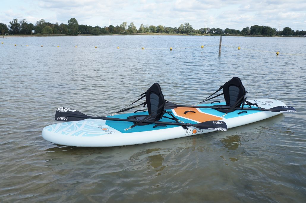 We designed this innovative and multi-functional board with families in mind. You can use the board as a SUP for 1 or 2 persons, but also as a kayak for 1 or 2 persons, or a combination of SUP and kayak. This multi-person board with multi-functionality is unique and the perfect recreation solution for families who want to spend more fun together on the water.