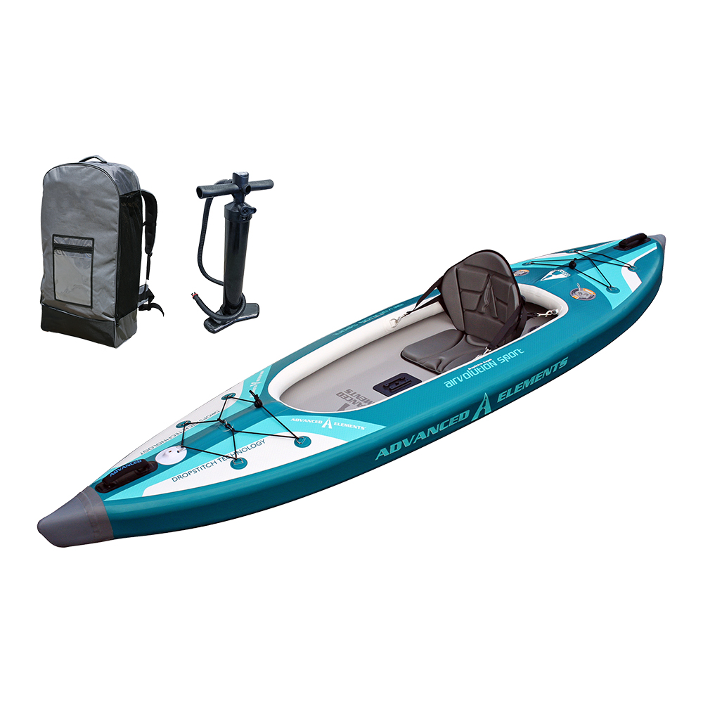 A rigid high-pressure drop stitch kayak unlike any other, the AirVolution Sport is a streamlined kayak with paddling performance rivalling that of a hard-shell kayak. Featuring an open-deck design for ease of entry, the AirVolution Sport uses durable materials and features many high-end components such as a high-back comfortable seat, bungee deck lacing for gear stowage, and heavy-duty grab handles. Unfold, inflate and you’re ready for your next adventure.