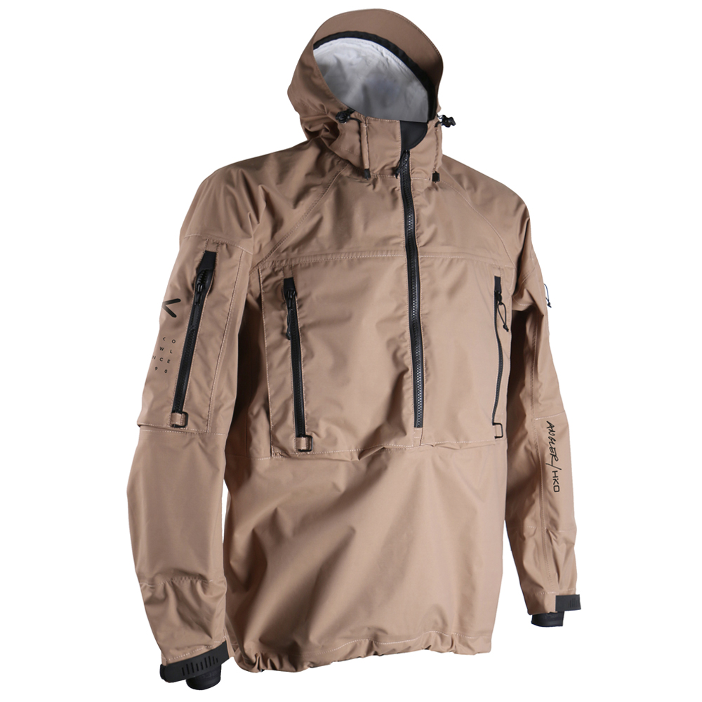 Designed specifically for kayak-fishing. The hood can be easily adjusted and has a built-in high collar to prevent water entry, reinforced visor, two chest pockets with side zipper entry – accessible when wearing a life vest – and two shoulder pockets, double waist.