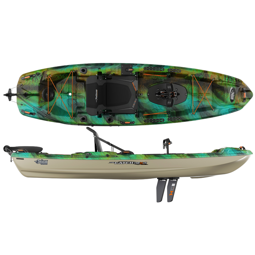 We have packed this kayak with the convenient features you love, like multiple flush mount rod holders, several rigging tracks, bottle and tackle box holders, accessory eyelets, anti-slip carpet, an 8” day hatch with storage bag, a convenient angler ruler, and two tank wells for easy storage. The HYDRYVE pedal system makes maneuvering in shallow water or around aquatic plants, an absolute breeze and by using the power of your legs, you’ll be able to go for long distances without getting tired.