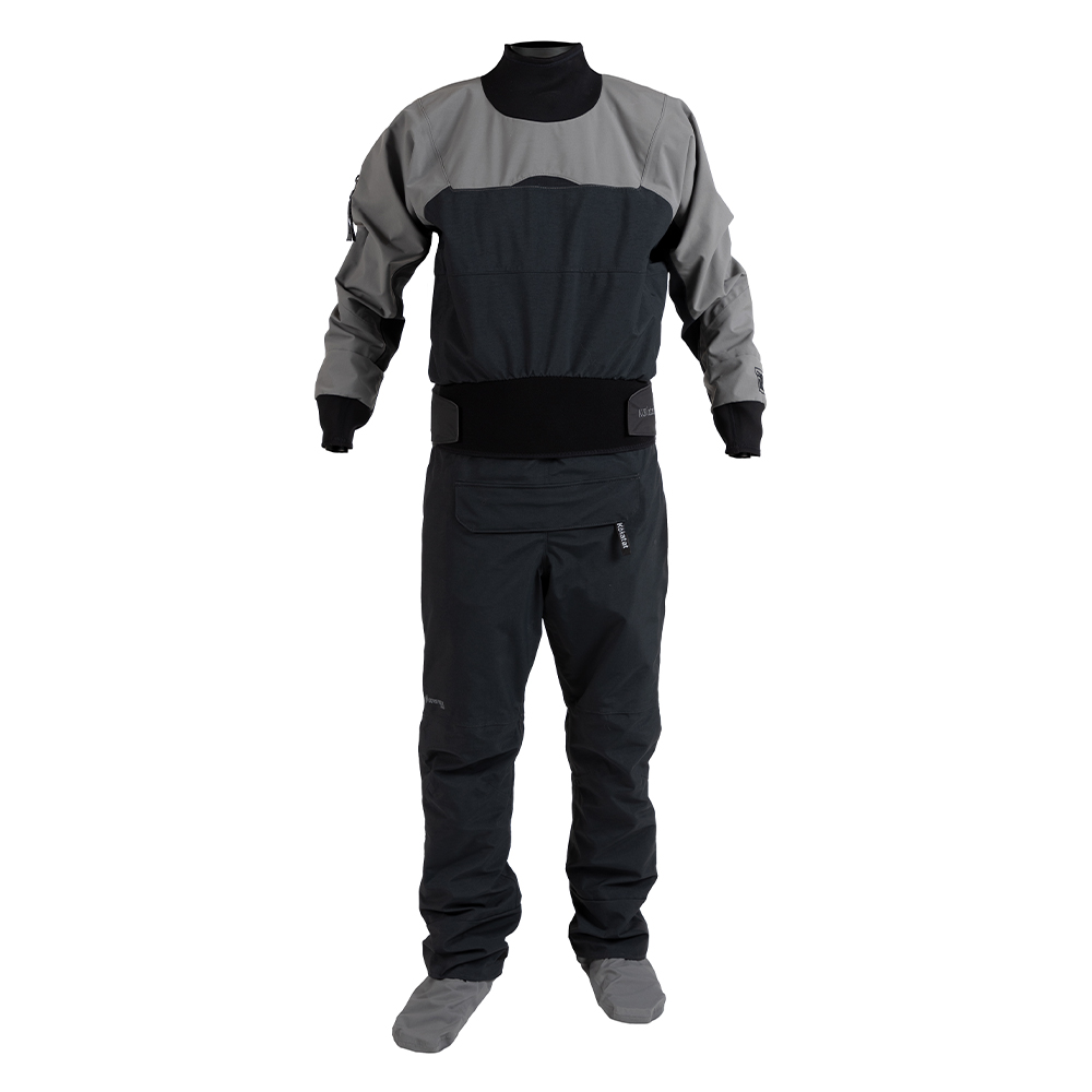 The Icon dry suit, made with lightweight, rugged, and durable GORE-TEX PRO material, pushes the upper limits of dry suit performance. The streamlined patterning on the legs provides more articulation for increased movement and improved comfort. The rear entry flexible nylon waterproof zipper moves comfortably with the paddler in the most difficult moves. Additional features include an adjustable overskirt, GORE-TEX PRO socks, front relief zipper with flap, latex gaskets, and neoprene punch through over cuffs. The women’s version features improved drop-seat zipper routing for better in-boat comfort. Offered as part of Kokatat’s custom sizing and option program, the Icon rear-entry dry suit is designed to take a beating and keep you dry.
