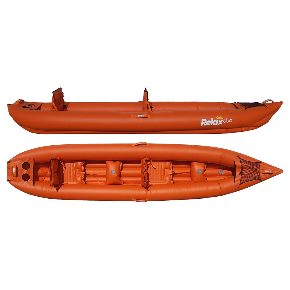 The Relax Duo is an inflatable recreational kayak for two, ideal for calm rivers, lakes, or coastal sea navigation.