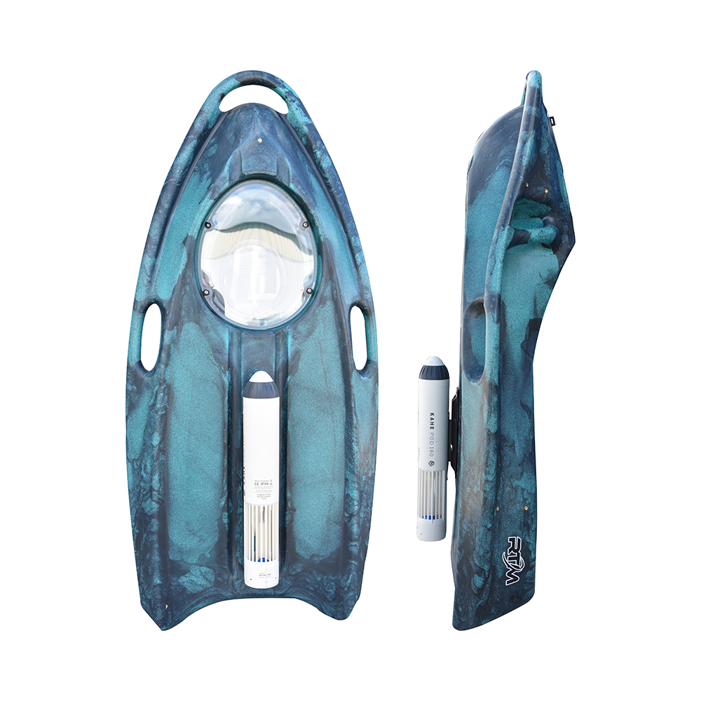 The SEAVIEW E-BOARD is designed for underwater exploration, featuring multiple handles and supports for enhanced safety. Its ergonomic design allows swimmers to comfortably position themselves while paddling, providing an optimal view of the underwater world through the integrated optical lens. Ideal for snorkeling adventures, this board combines comfort and functionality, making it a perfect companion for aquatic exploration.