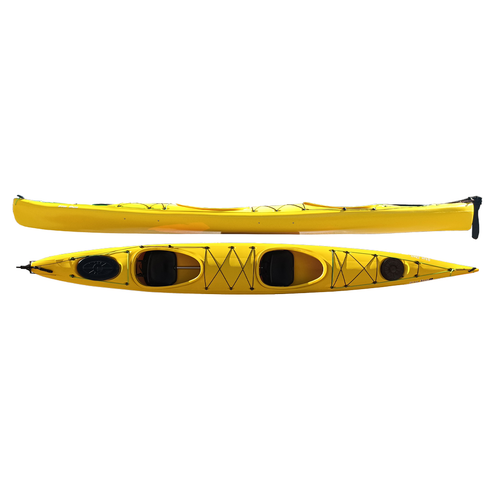 The Star Duo is the perfect solution for those looking to kayak together. Suitable for both private users and rental services, as well as extreme competition organizers, this double kayak offers a well-equipped, durable, and reliable design. It performs effortlessly, from relaxed sunny paddling to rougher conditions. Based on the award-winning Star 630 model, the Star Duo’s hulls are made and assembled in Finland. The expedition version includes bulkheads, comfortable seats, deck lines, hatches, and a rudder. This well-balanced kayak not only meets the needs of most tandem paddlers but also performs well for occasional solo paddling or when an adult wants to enjoy quality time with a child.