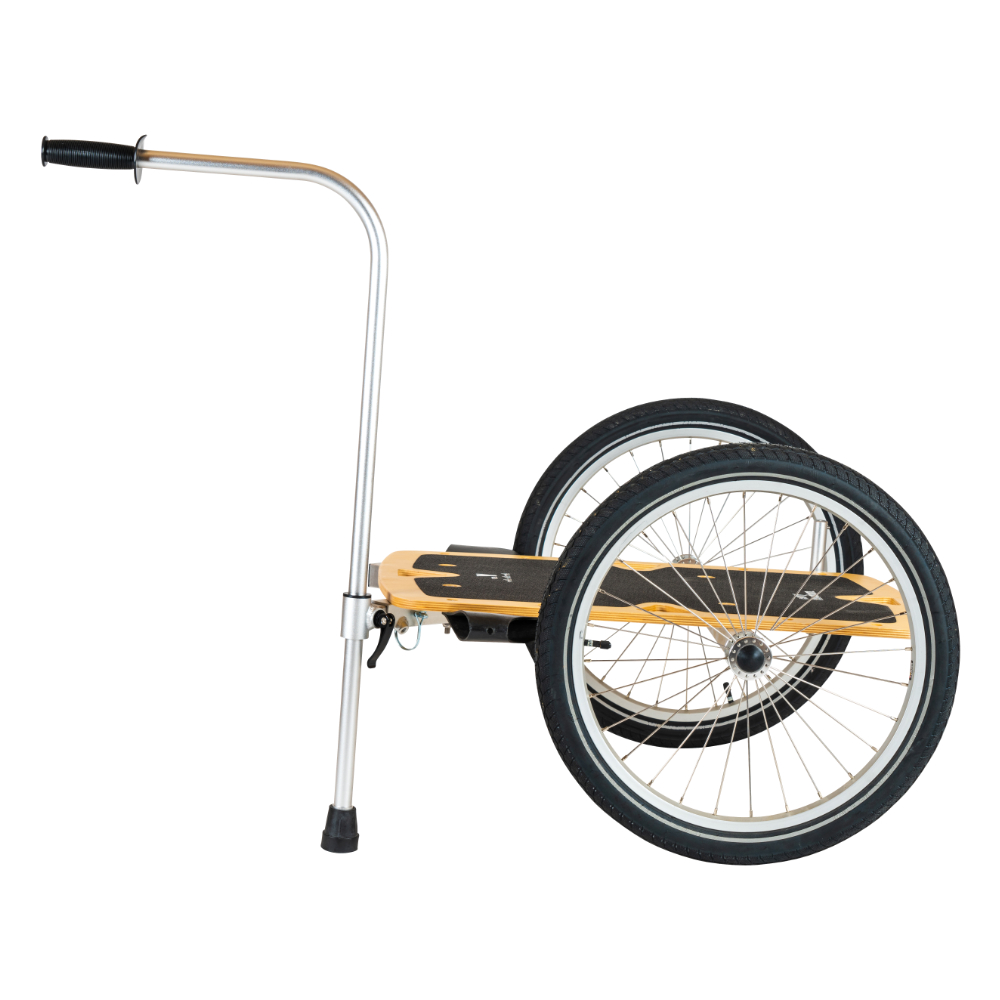 The LEAF is a folding trailer that has been designed for modern city mobility. The trip to the supermarket or the garden centre is easy with this flexible trailer. A folding trailer for shopping, travelling and city life, ideal for people living in apartments. The LEAF quickly folds flat for compact storage and can carry a week’s shopping. Large wheels make going up and down stairs easy. The trailer is compact and manoeuvrable for use in crowded markets and streets.