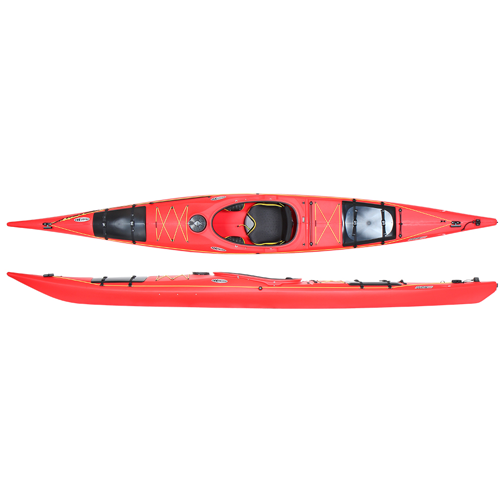 The Touryak 500 is the ultimate all-rounder for any adventure. Whether you’re touring a calm river, exploring a large lake, or embarking on a paddling holiday in the Stockholm Archipelago, this boat is your go-to choice. Spacious, stable, and versatile, it features a modern hull with dished lateral sides for excellent initial and secondary stability while ensuring smooth performance. The roomy cockpit provides exceptional comfort, even for larger paddlers on extended trips. With large storage compartments, ample gear capacity, and durable HTP construction, the Touryak 500 is built for any challenge. Its 3D-touring thigh braces with padded surfaces enhance comfort while reducing weight, making it perfect for your next journey.