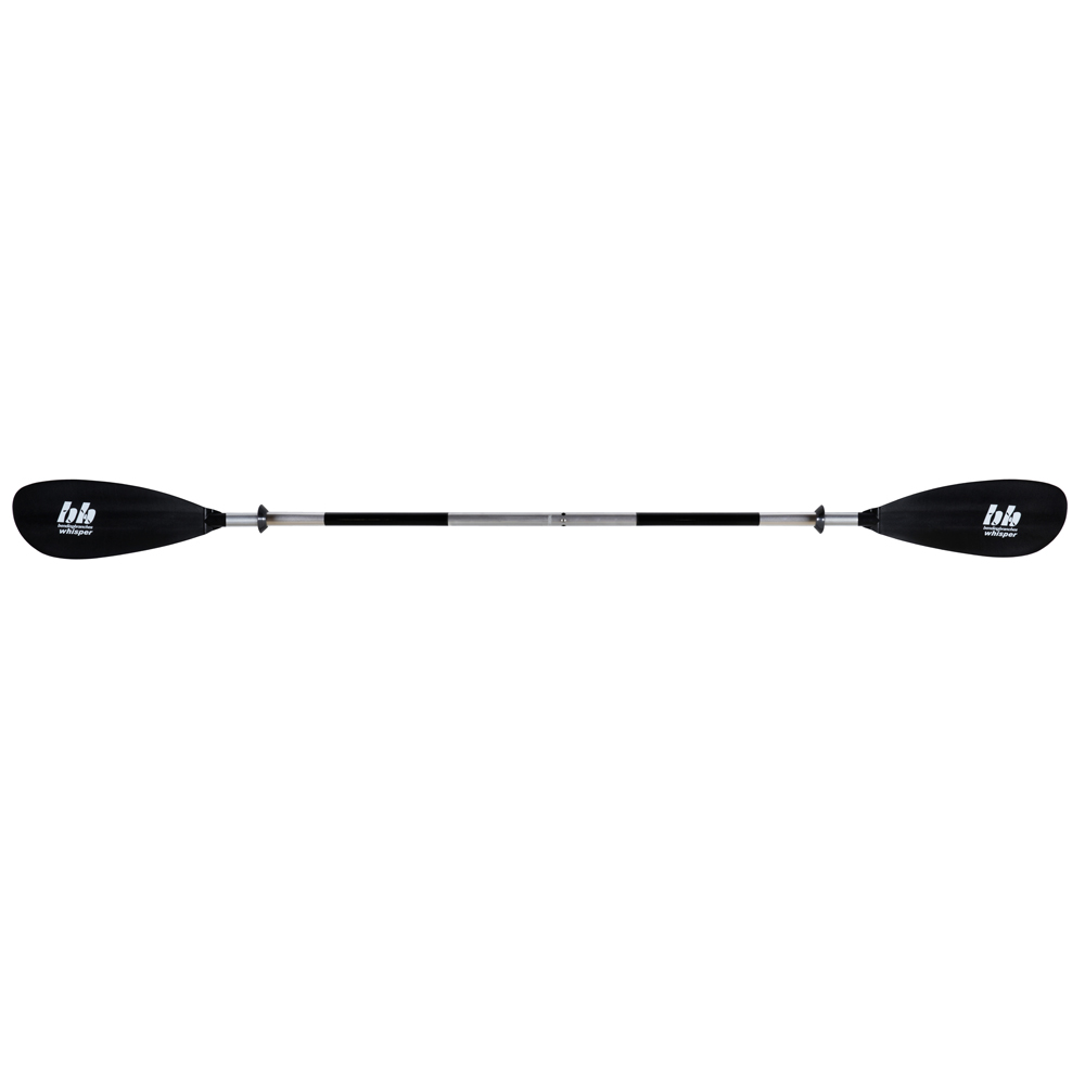 The Whisper combines durability with many extra features at a low price. The aluminum shaft, with a tight fitting 2-piece snap-button ferrule, is controlled comfortably by black grips. The polypropylene blades will take a beating and come back for more. All of this for a price anyone can afford. The Whisper comes with a snug-fitting 3-hole snap-button ferrule that is adjustable for feathering angles 0° and 60°, L or R. This paddle is available in Length from 210cm to 240cm, in 10cm increments.