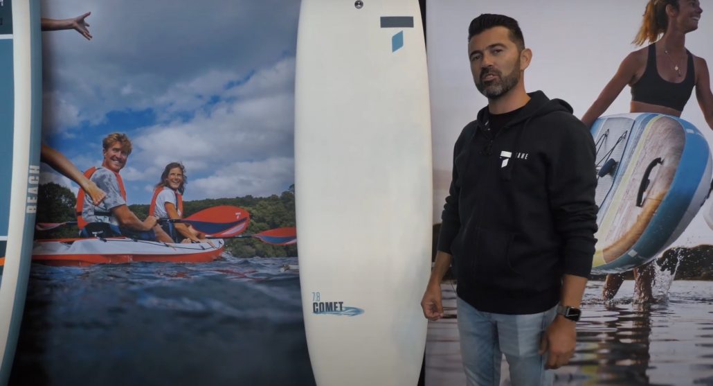 Kevin from Tahe introduces a new board for 2023, the Comet. Only at the Paddle Sports Show 2022 in Lyon, France.
